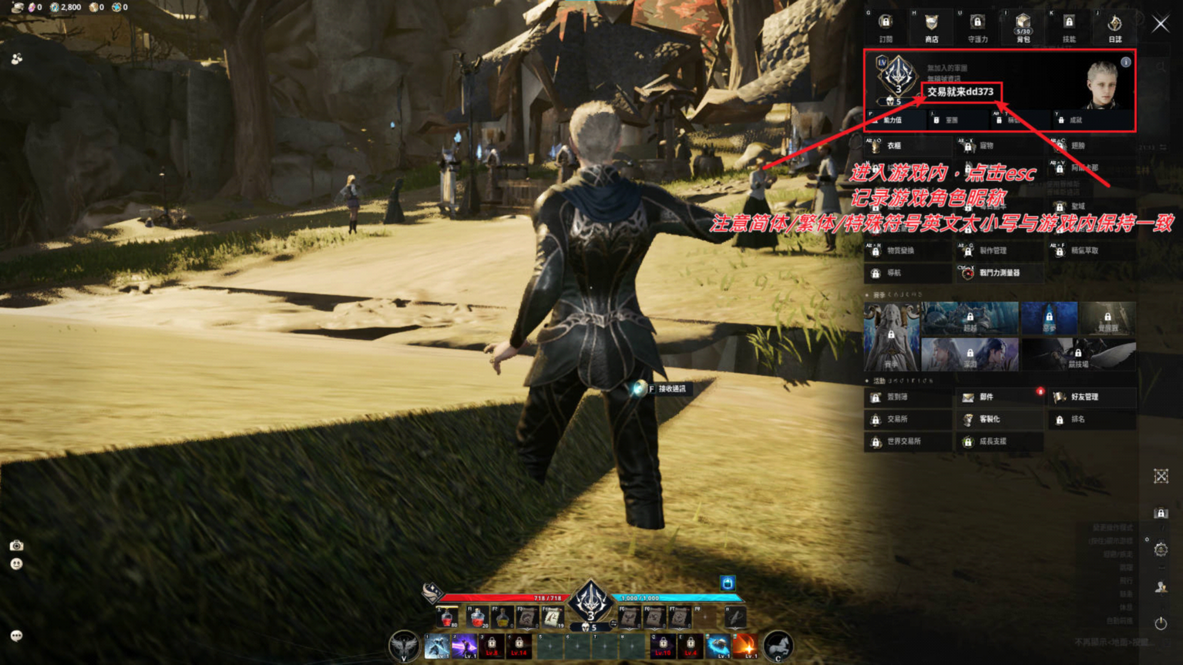 1. 登录游戏-永恒之塔2,ESC键打开右上角菜单页查看角色ID,注意简体/繁体/特殊符号/英文大小写与游戏内保持一致。