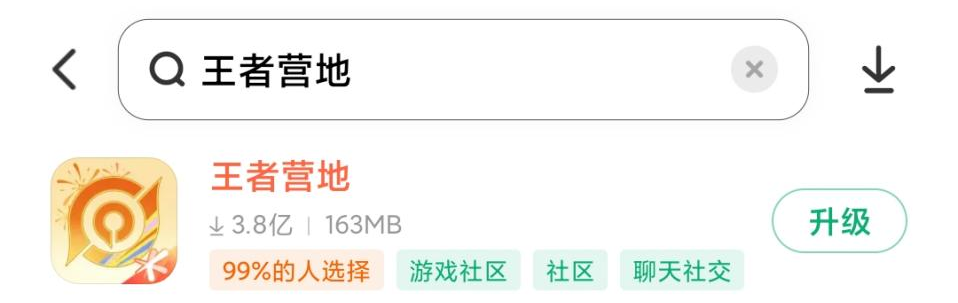 打开手机应用商店,搜索王者营地APP,点击下载。