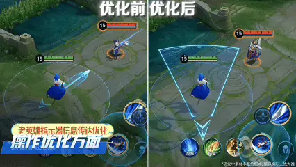 15位英雄的操作指示器进行调整,失误率会大幅降低;而李白、夏侯惇等贴脸空技能的情况,也被修复了。