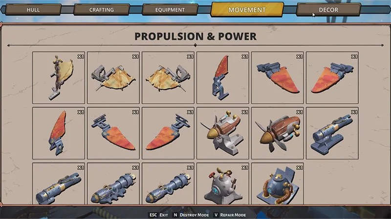 飞艇的建造不仅仅是单纯的部件拼装,而是涉及重量平衡、火力覆盖与机动性能的复杂系统工程:每一次升级与改装都能让玩家自己决定舰队的远征能力与生存极限。