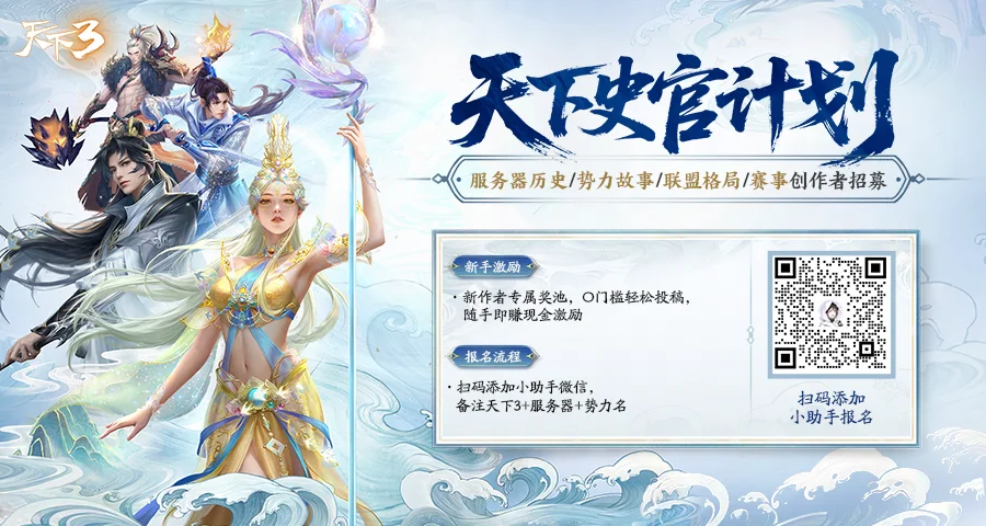弱水三千将与昆仑变合并 阵营对抗人数翻倍,战斗激烈程度持续提升 重点优化移动端适配 打磨操作流畅度,实现丝滑操作 让移动端少侠也能拥有媲美端游的极致对战体验 降肝限氪 保持每月限氪300元 活跃同享功能也将覆盖年度服 一份付出双倍收益 大家可以更好地专注于战斗本身 “天下史官计划” 随着新赛季拉开序幕,“天下史官计划”也应运而生——4月1日-4月30日,我们诚邀每一位热爱创作的少侠,成为大荒“史官”,记录势力团建与对抗、大规模GVG玩法战况、赛事局势等内容,书写属于你的大荒历史,更详细的资讯,可扫码添加下方小助手报名了解。
