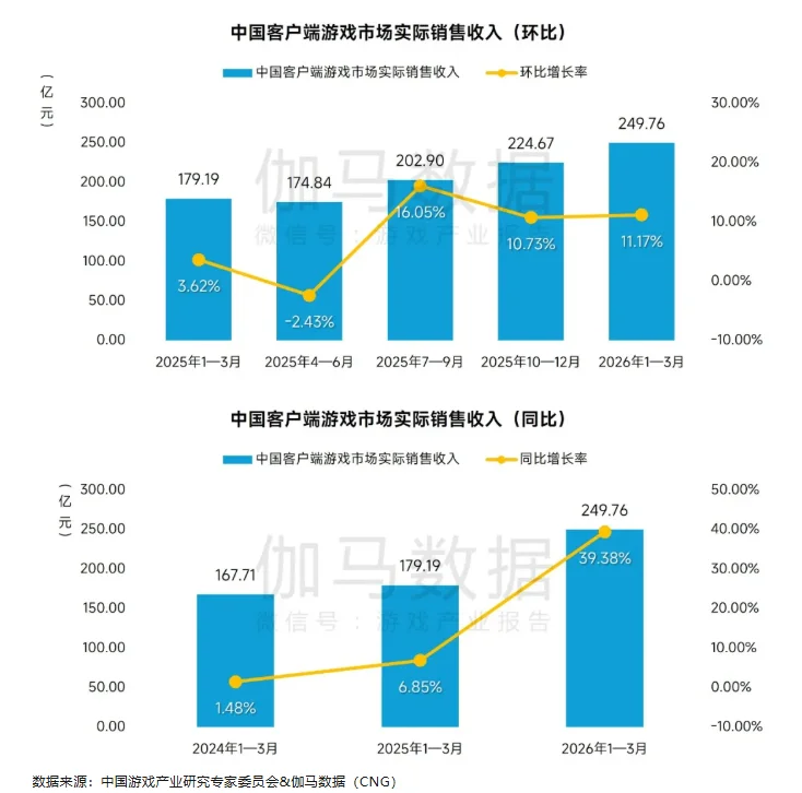 2026年Q1客户端游戏的强势反弹,反映出市场对高品质、高沉浸感产品的持续需求。随着更多厂商布局“PC+移动端”双端生态,以及AI、云游戏等技术赋能,客户端游戏正从“小众精品”向“大众化高质量体验”转型,有望在未来继续扮演行业增长压舱石的角色。