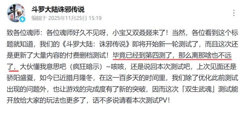 《斗罗大陆:诛邪传说》「双生武魂」测试已于12月1日正式开启,本次测试为第四次测试,性质为限量计费删档测试,平台为安卓平台。