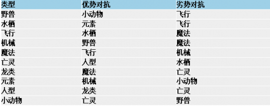 每个类型还具有一项被动效果,例如,飞行宠物在生命值高于50%时基本可以先手行动,亡灵宠物被击败后可以复活再战一轮。