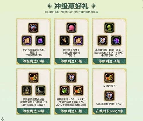 在新服冒险时,角色不仅可享亿点点经验加成,当角色提升至指定等级或完成冒险任务时,还有超多珍贵好礼,等待大家来免费抱走!永久原画时装、萌鲸鱼头饰、小妖精背包、挚爱表情纸箱兑换券、白色狐狸尾巴、2010圣诞时装免费兑换券,全部免!费!送!冒险旅程中大有用处的花冠、钻石潘多拉、疲劳恢复剂以及各类实用材料等等,也会免费送给大家哦!