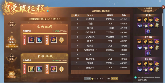 值得一提的是:中期结算战力排行榜已升级为全服排行榜,对应奖励也已全面加码,全服争霸,见证至尊豪侠诞生!