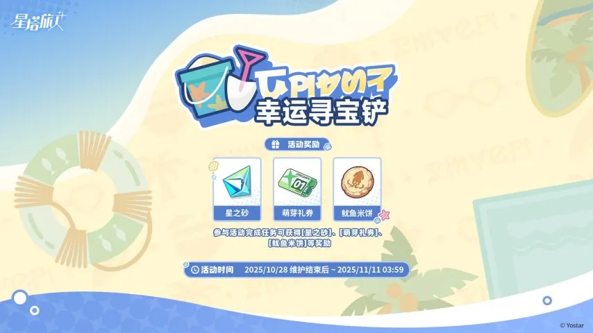 活动期间,旅人招募卡池【直抵圆月的超巨浪】于10月28日限时开启,全新5星旅人【希娅】获得限时招募概率提升。希娅热爱与大海相关的一切,尤其喜欢冲浪,享受海洋的辽阔与自由。身为绒绒族的兔子少女,她还拥有异常敏锐的嗅觉,能通过气味感知他人情绪与性格,而面对重要的人,她会用肢体接触表达好感。在战斗中,希娅作为先锋定位的光属性角色,通过操纵神器浮游炮“雪兔&夜兔”,展现迷人的战斗风姿。